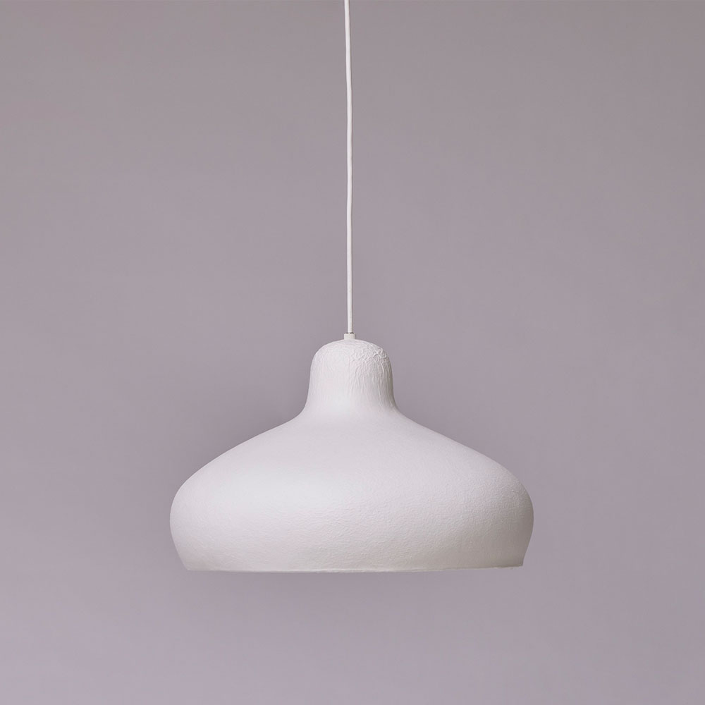 鳥取県東部に残る奈良時代からの伝統を持つ「因州和紙」の技術を受け継ぐメーカーが長年の研究により独自に開発した、和紙を立体的に漉いて形にしていく「立体漉き和紙」を使用したペンダントライトです。