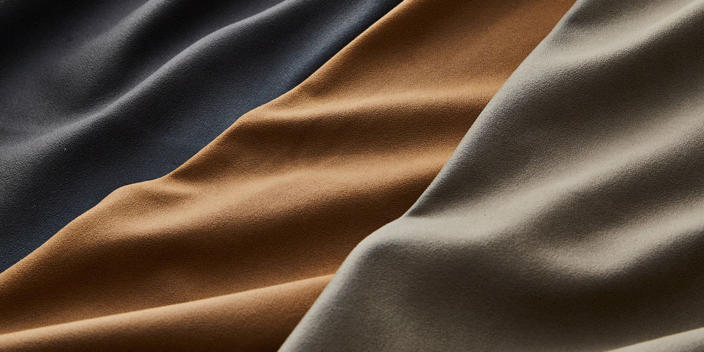 シルキースエードのような風合いを持った、上質でなめらかな肌触りの生地です。環境にやさしいビーガンレザーの一種で、本革特有のメンテナンスなく本革の風合いをお楽しみいただけます。※画像はイメージです。