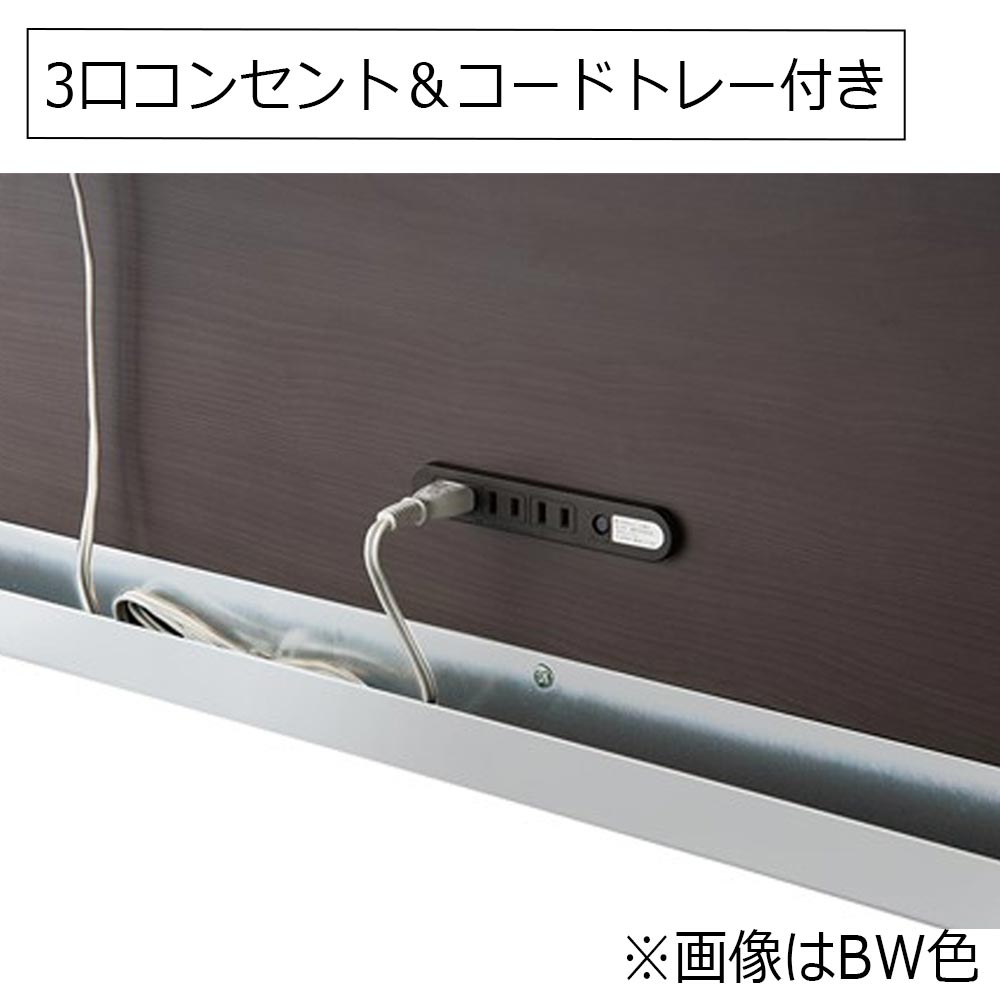 デスク奥下に余分なコードをまとめて置けるコードトレイと3口コンセント付き。合計1,500Wのブレーカー付きコンセントです。