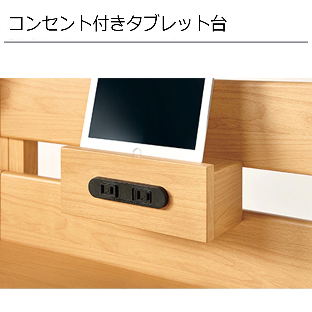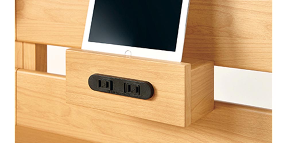 2口コンセント(合計1500Wまで)の上面にタブレットがおけるタブレット台。