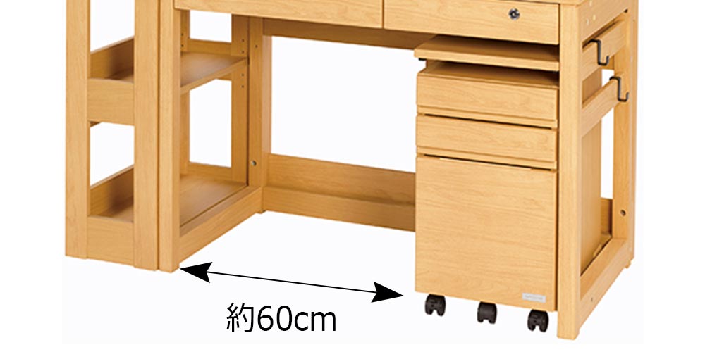 スリムなワゴンを採用することで足元スペース約60cmのゆったりサイズを確保。体の出し入れがしやすく、大きめの椅子も収まりやすい空間です。