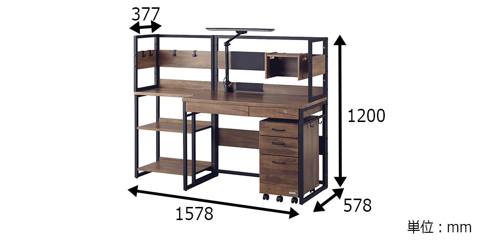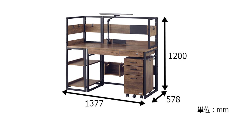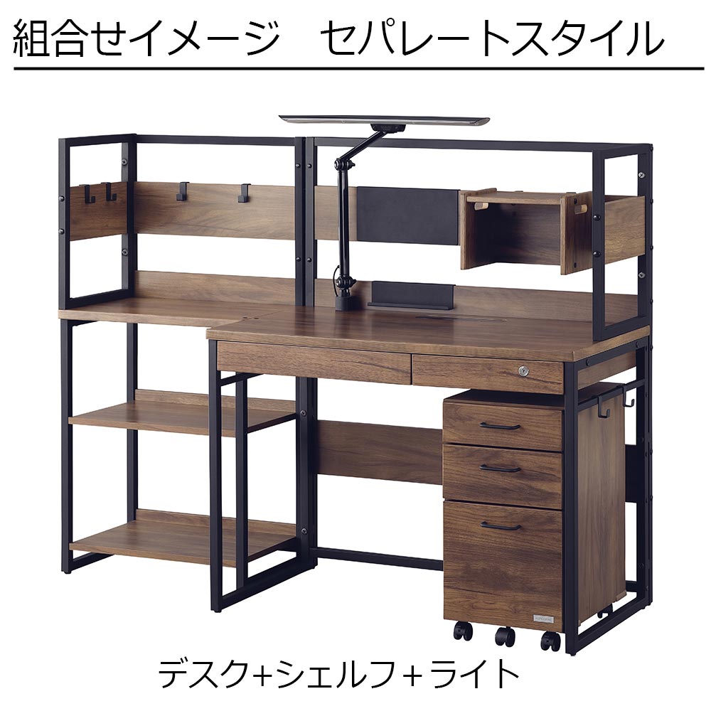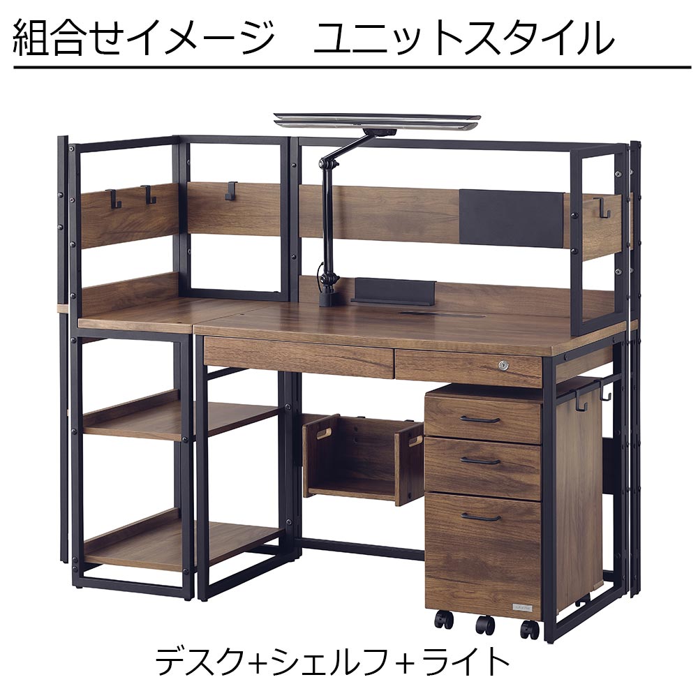 アイアンフレームとアンティークブラウンがスタイリッシュな大人の雰囲気のシェルフです。シリーズのデスクと合わせた充実した機能で在宅ワークやオンライン授業などにもおすすめです。