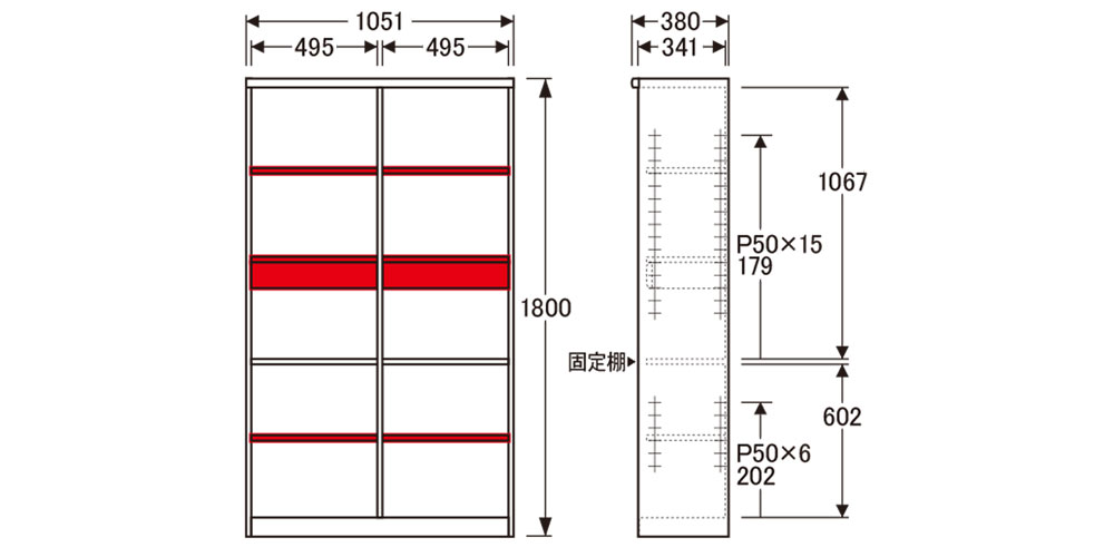 棚板:幅494X奥行310X厚み21mm(2枚)