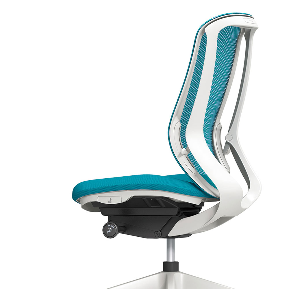 カラダの大きな人と小さな人では、好みの背もたれ形状が異なります。シルフィーは座る人の好みに合わせて、背もたれのカーブを2段階で変えられる「バックカーブアジャスト機構」を採用しました。
