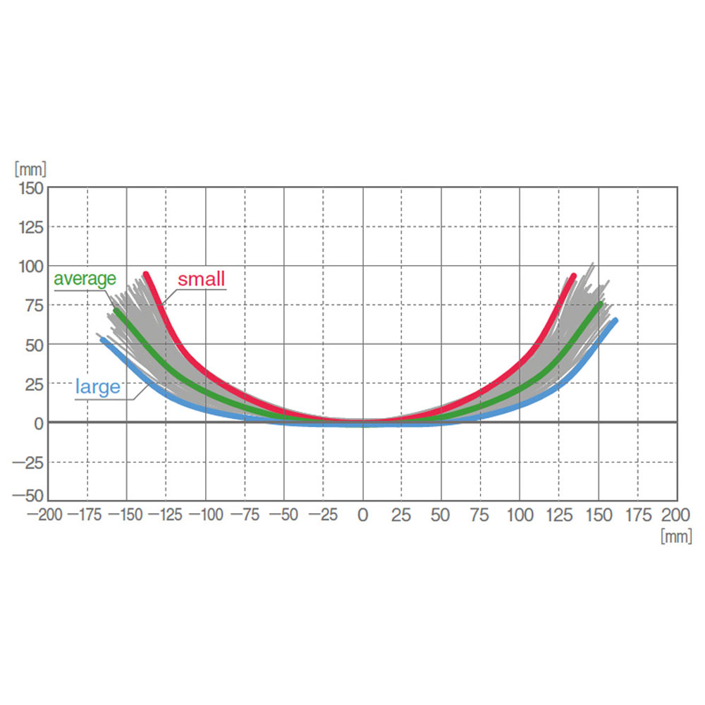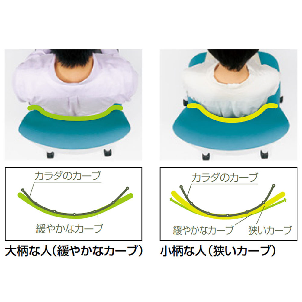 背の両サイドにあるレバーを下の位置にすると緩やかなカーブになり、大柄な人にフィットします。レバーを上に持ち上げると狭いカーブになり、小柄な人にフィットします。