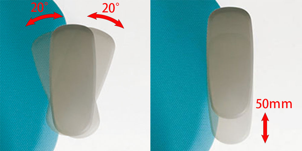 肘パッドは内側に20°、外側に20°、前後に50mm、動かすことができます。