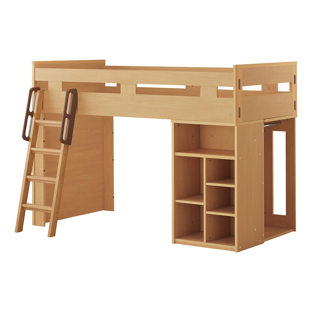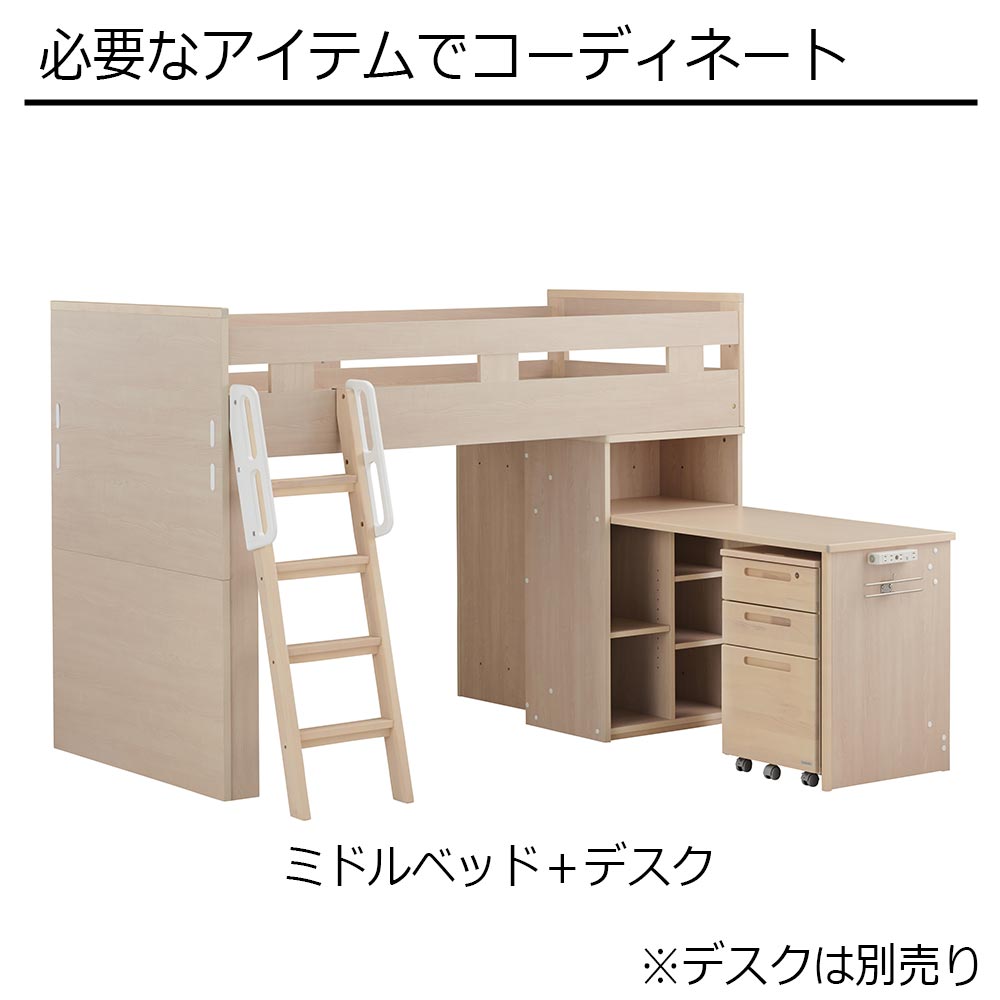 ミドルベッドのマルチラックにデスクを専用金具で連結してお使いいただけます。