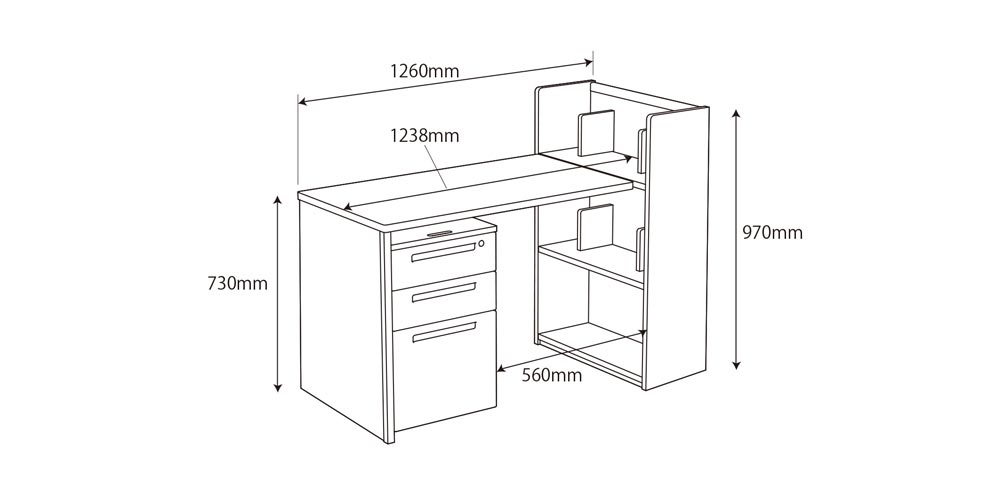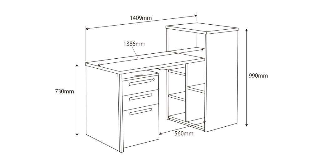 サイズ詳細(デスク+ミドルベッド付属シェルフ)