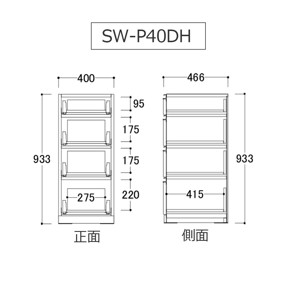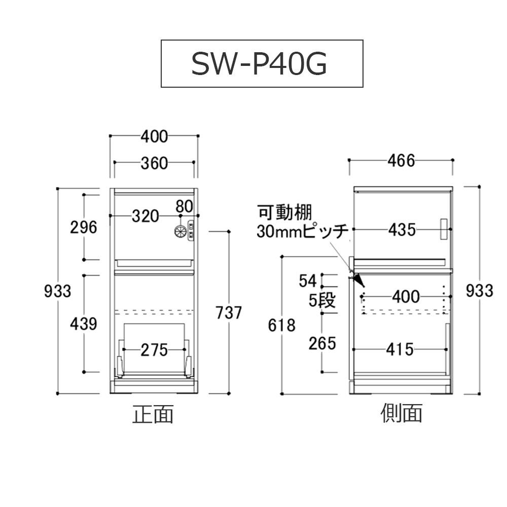 | 家電収納部分 | 幅360x奥行435x高さ296 |