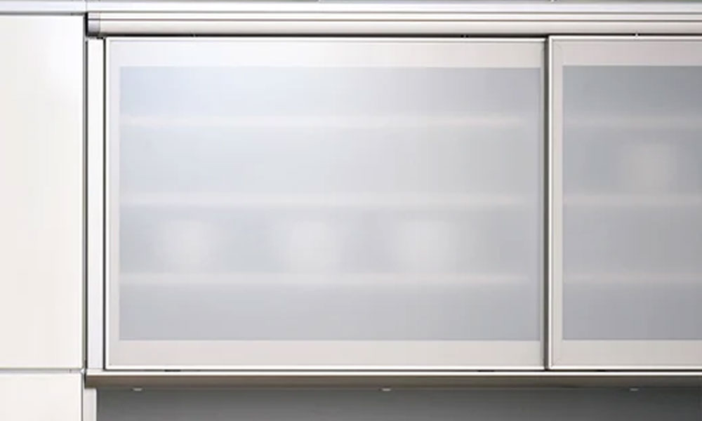 細枠アルミフレームでシャープな印象です。吊り式の引き戸を採用しており、カーテンのように引き戸を上から吊っているので下に荷重がかからず、なめらかな引き心地です。シングルソフトクローズ搭載でゆっくりと閉まります。※画像はスタインシリーズのイメージです。
