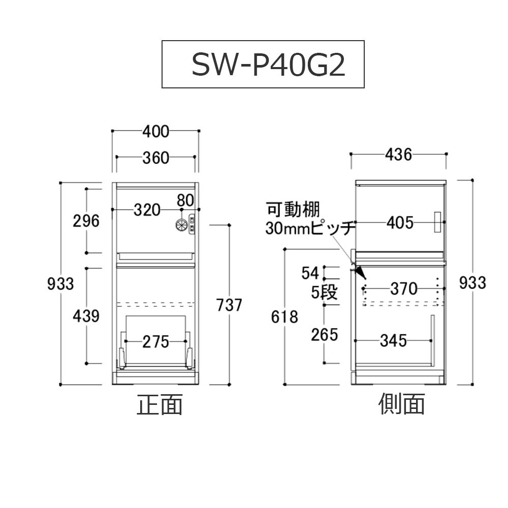 | 家電収納部分 | 幅360x奥行405x高さ296 |