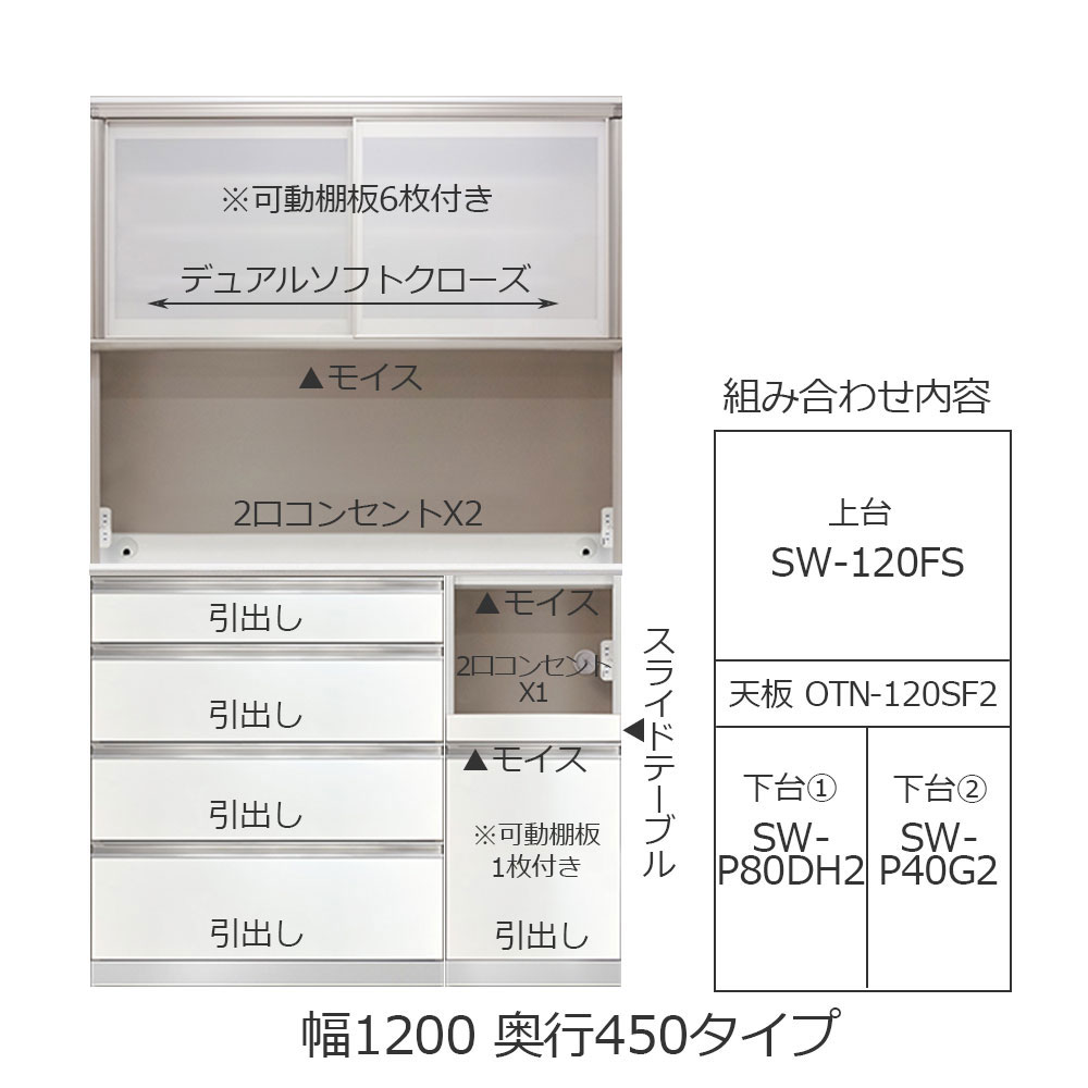 アルミフレームをより細く、背板をアルミマットにすることでスタイリッシュな印象に仕上げています。家電の使い勝手が良いハイカウンターに加え、引出しには上下どちらからでも指を掛けられるラインハンドルを採用するなど、機能性に優れたオープンボードです。スリムな奥行45cmタイプのパールホワイト色です。パーツを組み合わせているため、家電収納は左右どちらにも組み立て可能です。※画像はイメージです。