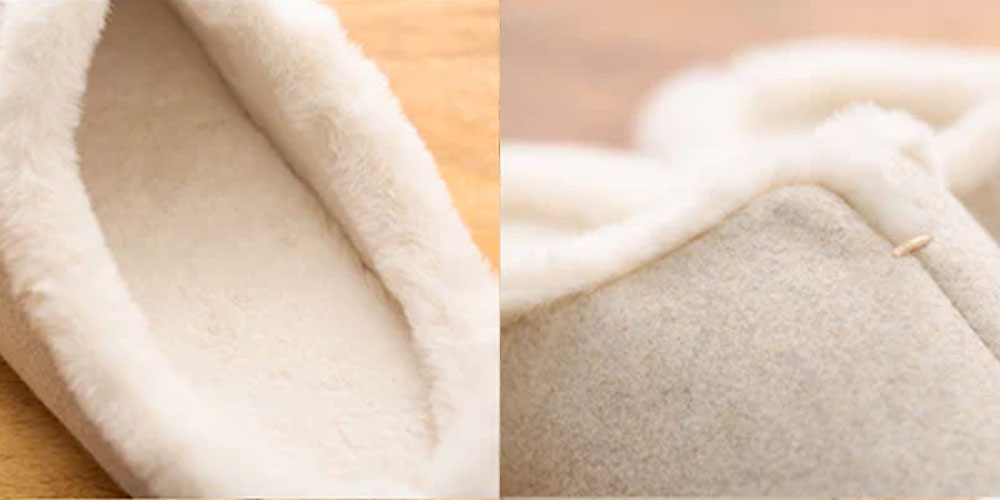 シンプルなデザインとクッション性のある快適な履き心地が特徴のルームシューズです。柔らかなカラーとボアで、寒い日に素足で履ける冬バージョンです。