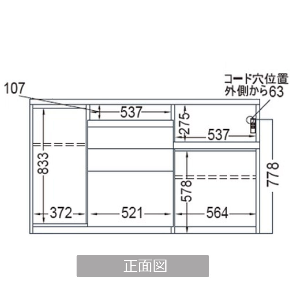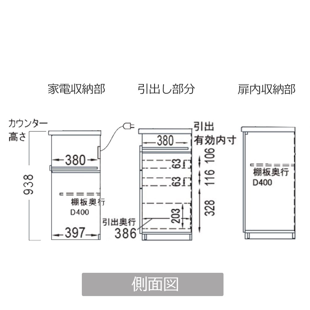家電収納部分:幅537x奥行380x高さ275
