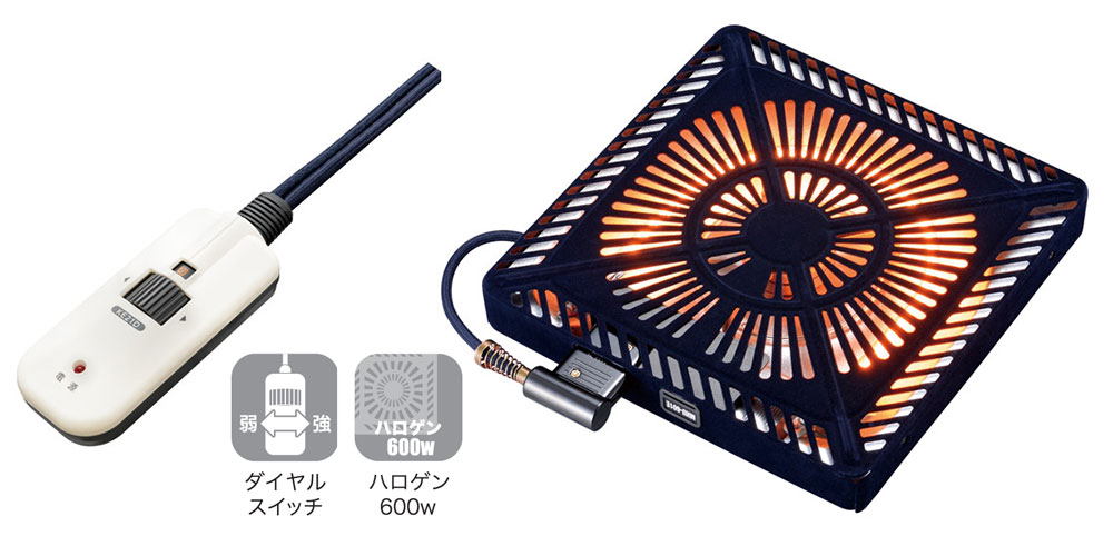 即熱・即暖に優れた600Wのハロゲンランプを使用したヒーターは薄型で横から見ても目立ちにくく、冬場以外でも気にせずご使用いただけます。