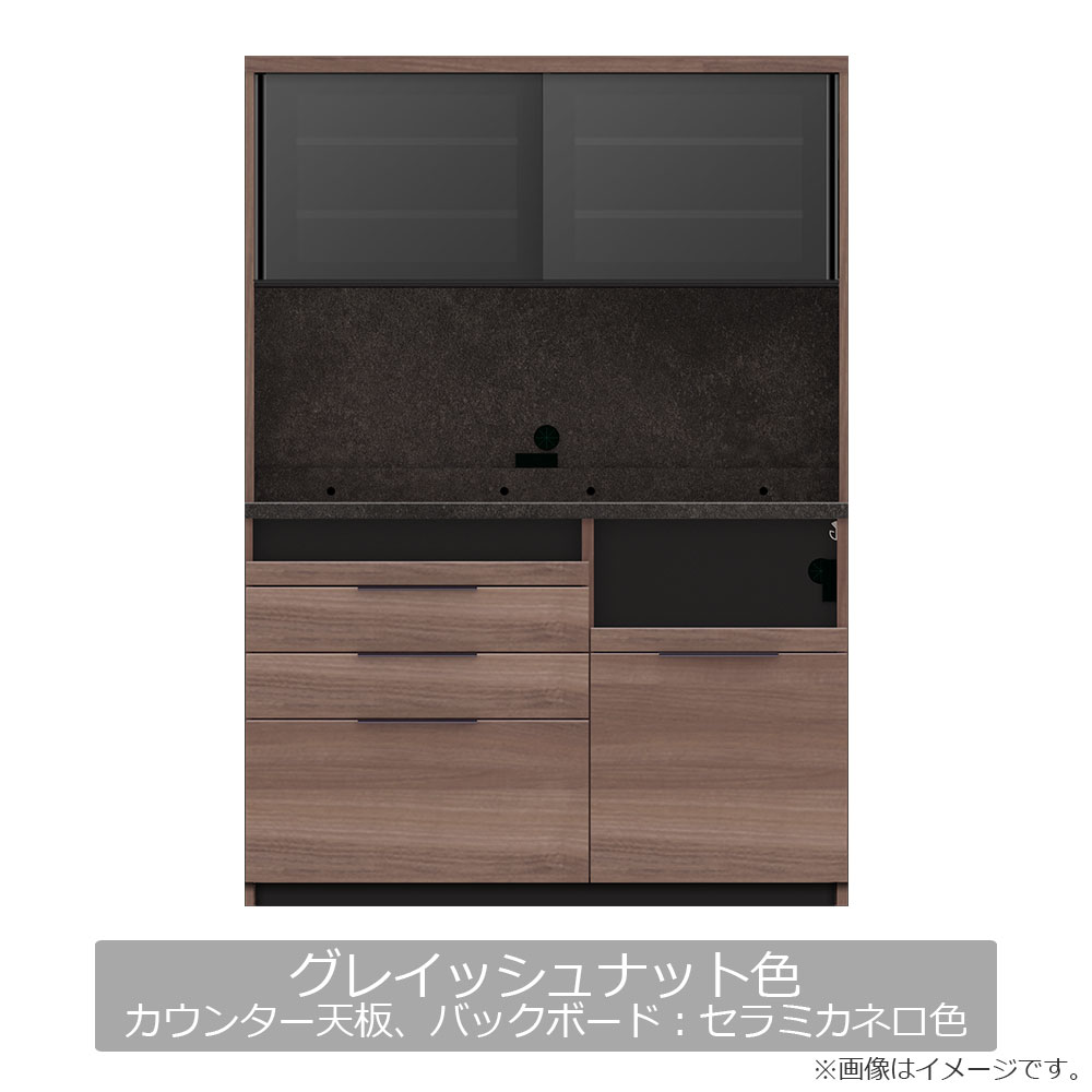 バッグボード・カウンター天板:セラミカネロ/外装:グレイッシュナット/下台内装:ブラック/引手:ブラック/コンセント:ブラック