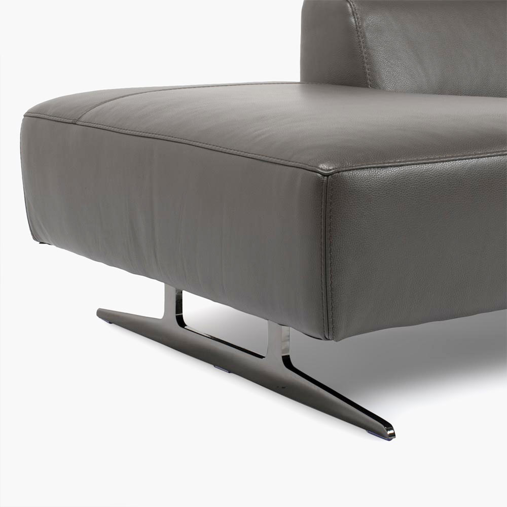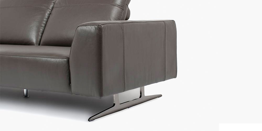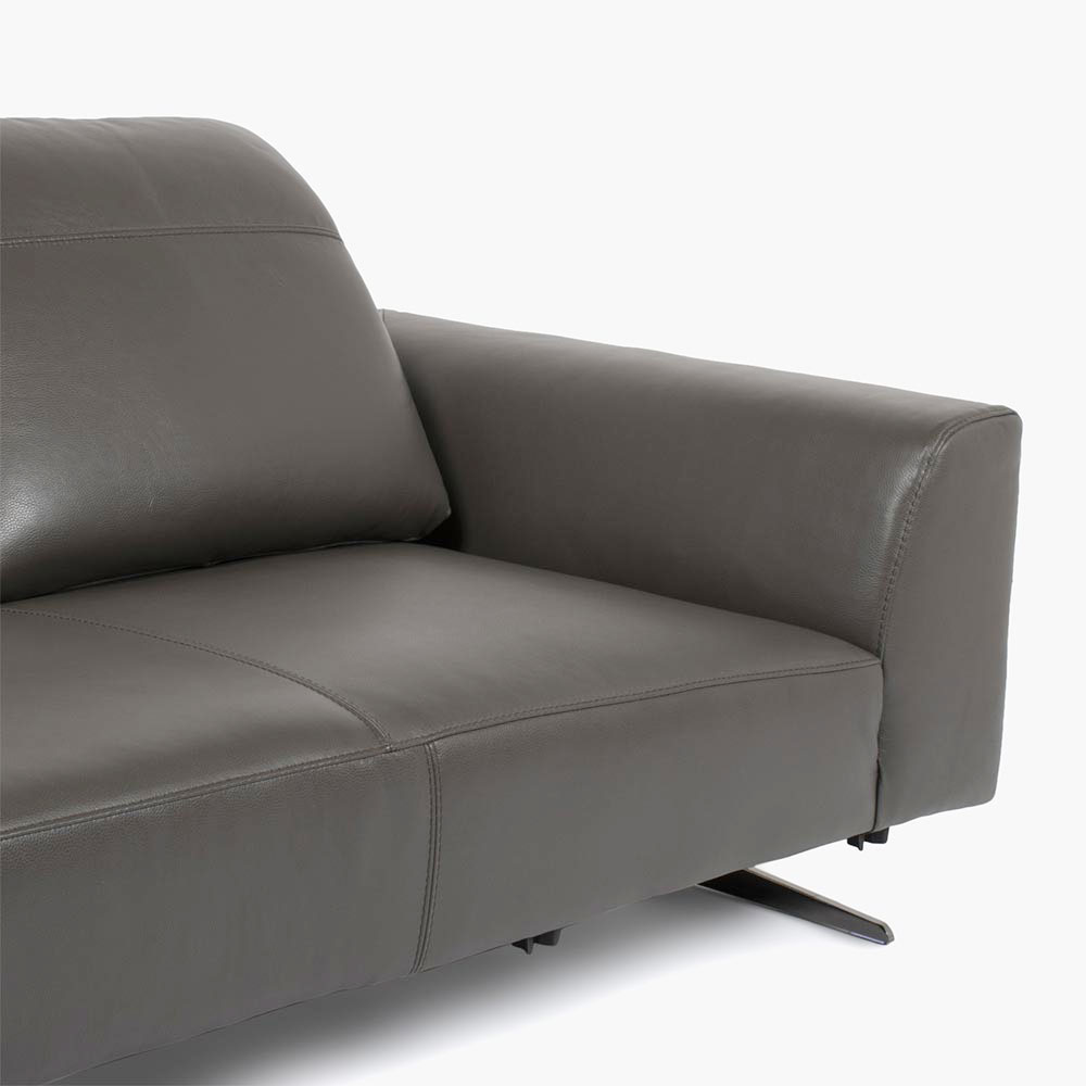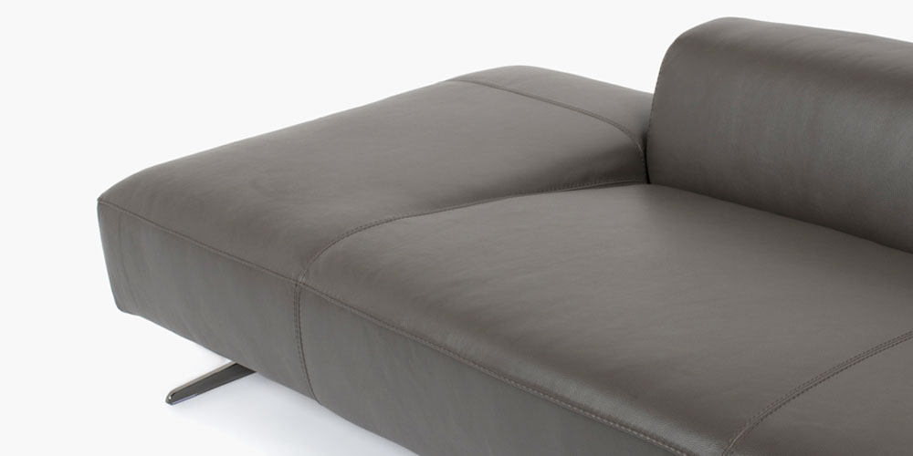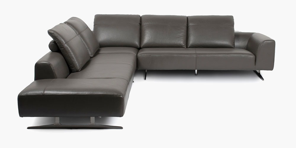 スタイリッシュな脚部が浮遊感を演出する本革張りのコーナー型のカウチソファです。グラファイトカラーの本革とブラックニッケル色の金属脚がモダンな印象です。