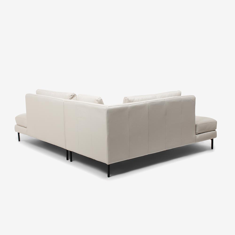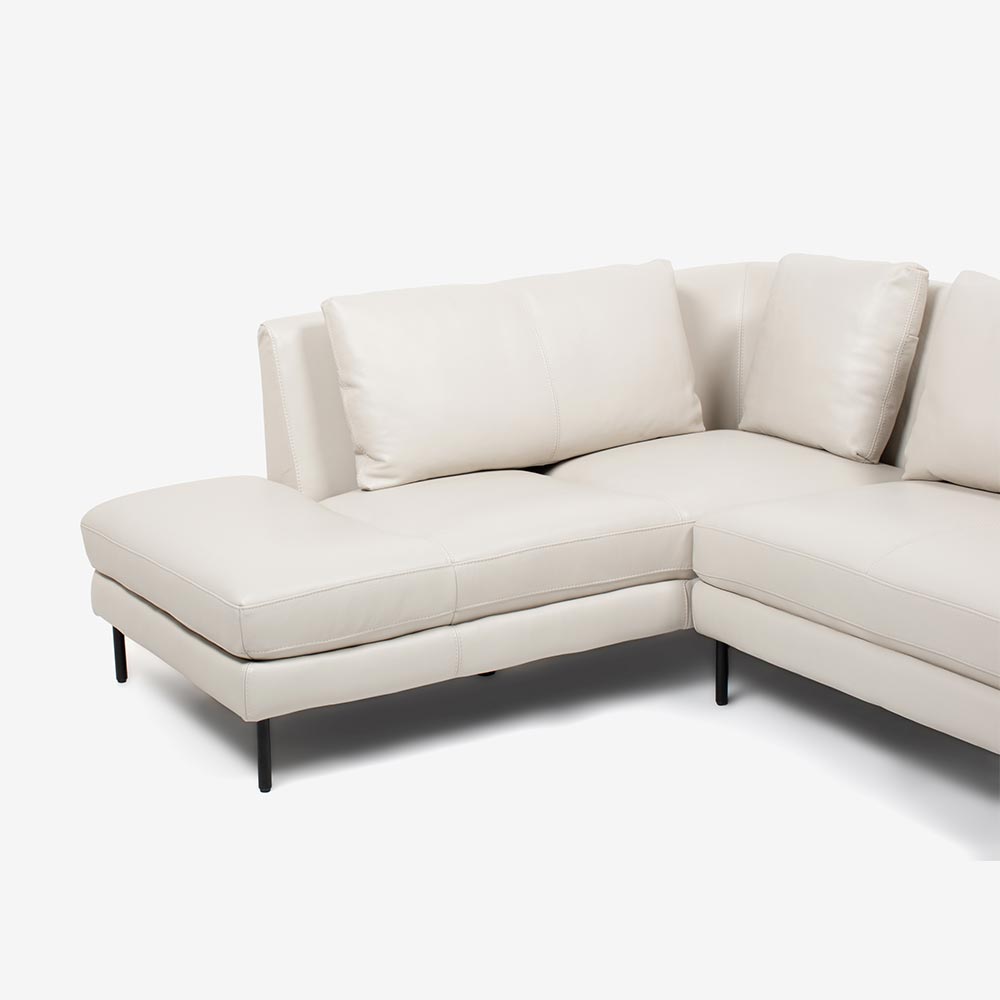 幅2380mmでコーナー型ソファとしてはコンパクトな設計。コンパクトサイズに加え、ブラック色の細い金属脚が浮遊感を演出し、空間をすっきりと見せます。お掃除ロボットも対応可能です。
