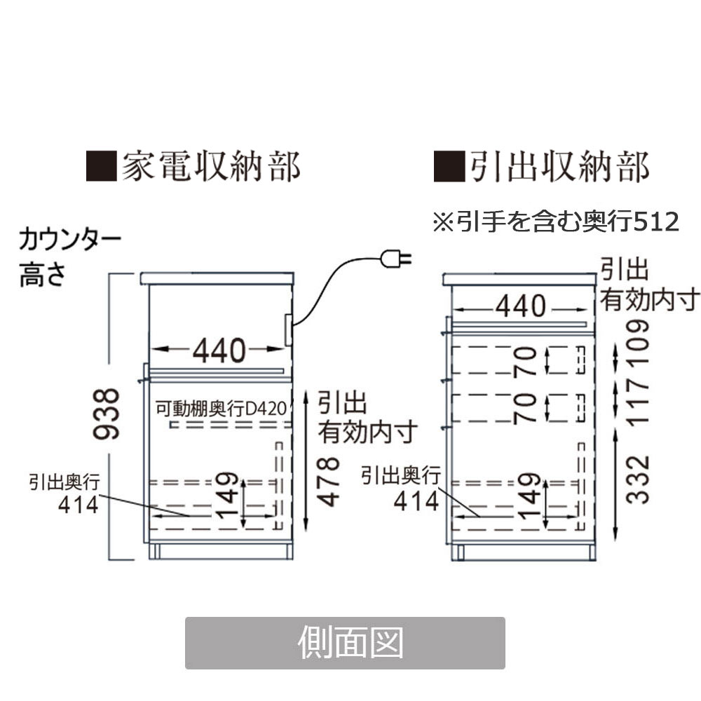 欲しい収納と機能がまとまったキッチンカウンター「IDA-1000R下台」幅100cm 奥行50cm 家電収納下引出しタイプ