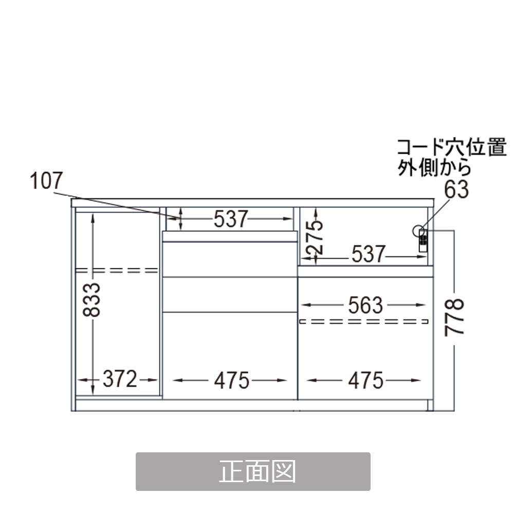 Pamouna(パモウナ)キッチンカウンター「IDA-S1600R下台」幅160cm 奥行44.5cm 高さ93.8cm ハイカウンター 家電収納下引出しタイプ 全3色