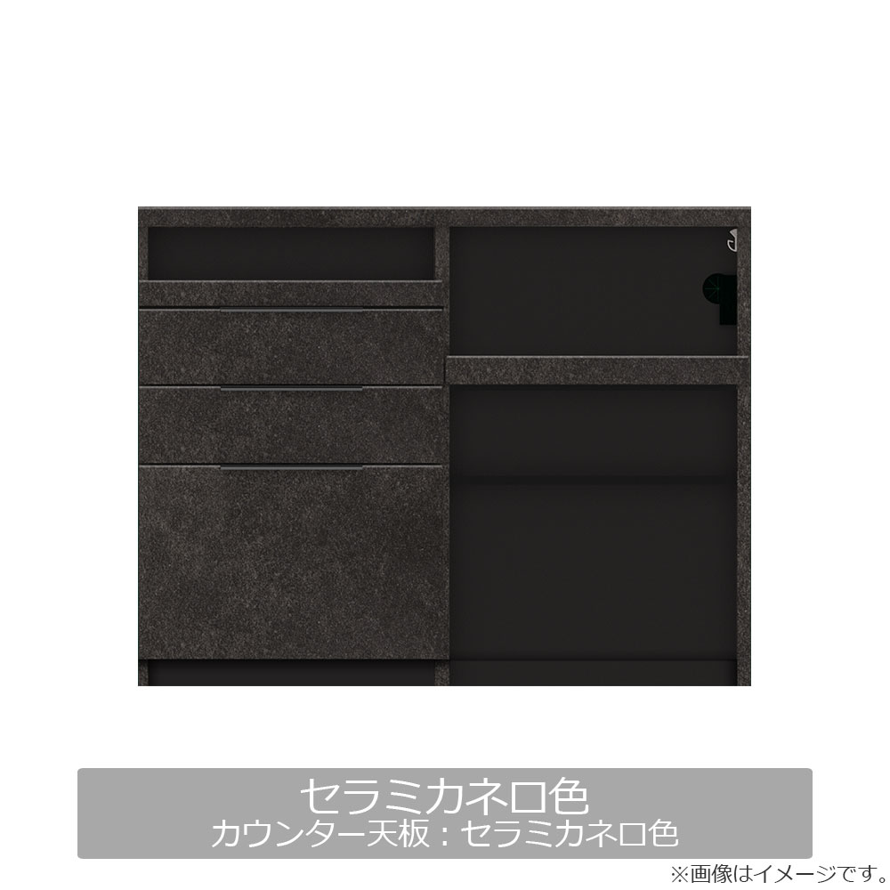 多彩な使い方ができるオープンスペースとグレードの高いイノテックレールを使用した深さの異なる引出しを備え、キッチンに欲しい収納と機能を揃えたカウンターです。スリムな奥行44.5cmタイプです。お部屋のインテリアに合わせて選べるセラミカネロ、グレイッシュナット、パールホワイトの3色展開です。※画像はイメージです。