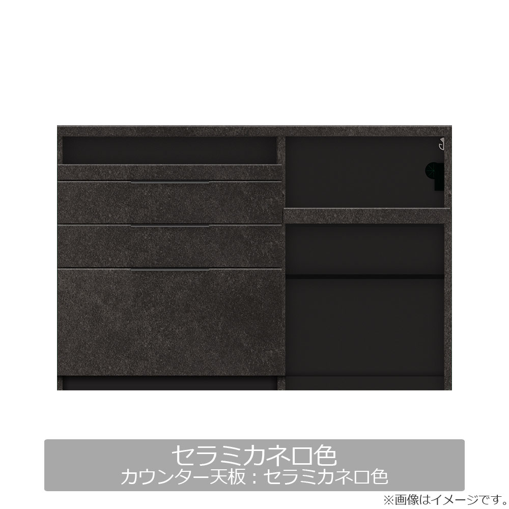 多彩な使い方ができるオープンスペースとグレードの高いイノテックレールを使用した深さの異なる引出しを備え、キッチンに欲しい収納と機能を揃えたカウンターです。スリムな奥行44.5cmタイプです。お部屋のインテリアに合わせて選べるパールホワイト、セラミカネロ、グレイッシュナットの3色展開です。※画像はイメージです。