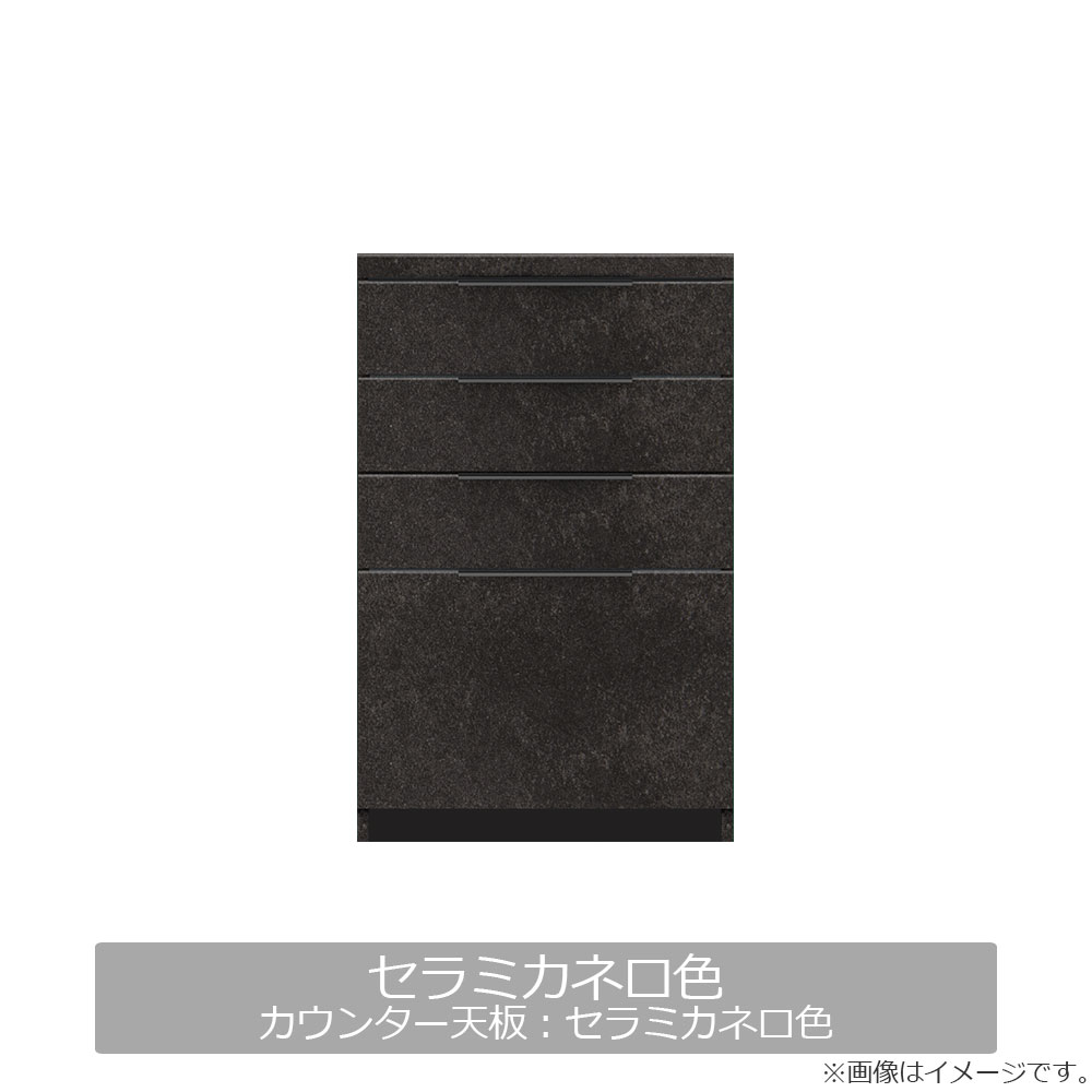 石目調のダーク系カラーが空間を引き締めるセラミカネロ色。セラミックのキッチンやテーブルとのコーディネートにもおすすめです。SmartNANO®トップ使用。【カウンター天板:セラミカネロ、引手:ブラック】※画像はカラーをお伝えする為のIDシリーズのイメージです。