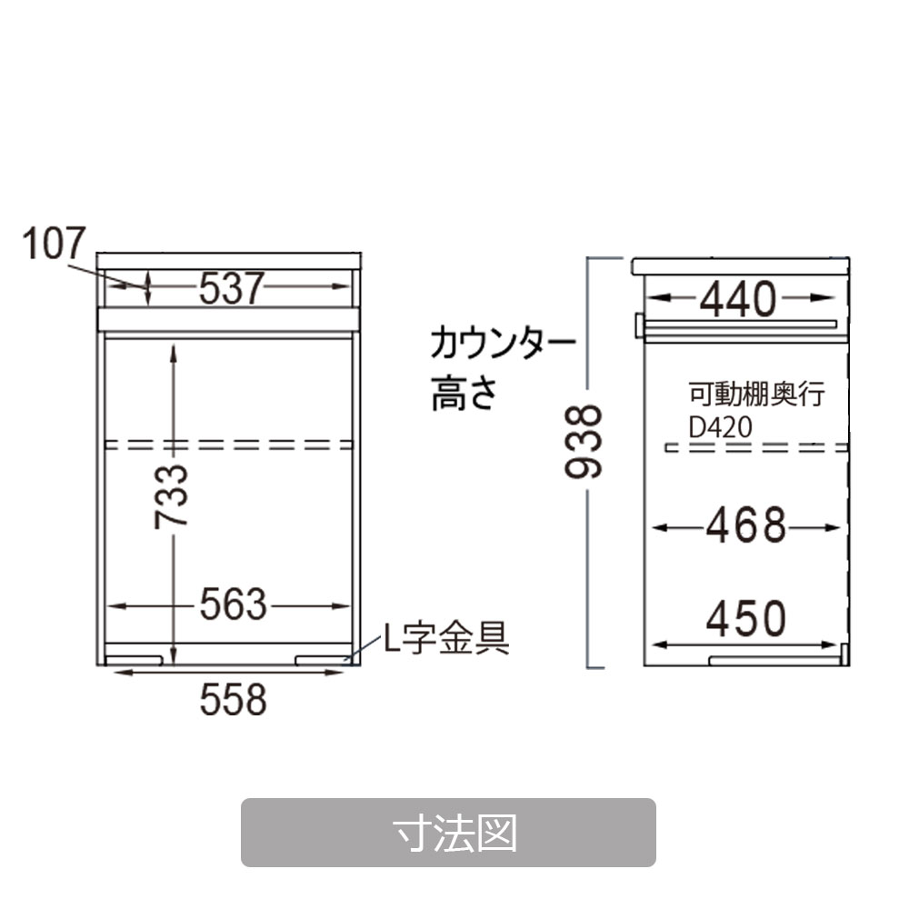 多様な収納を叶えてくれるIDシリーズのキッチンカウンター「IDA-602R下台」幅60cm 奥行50cm