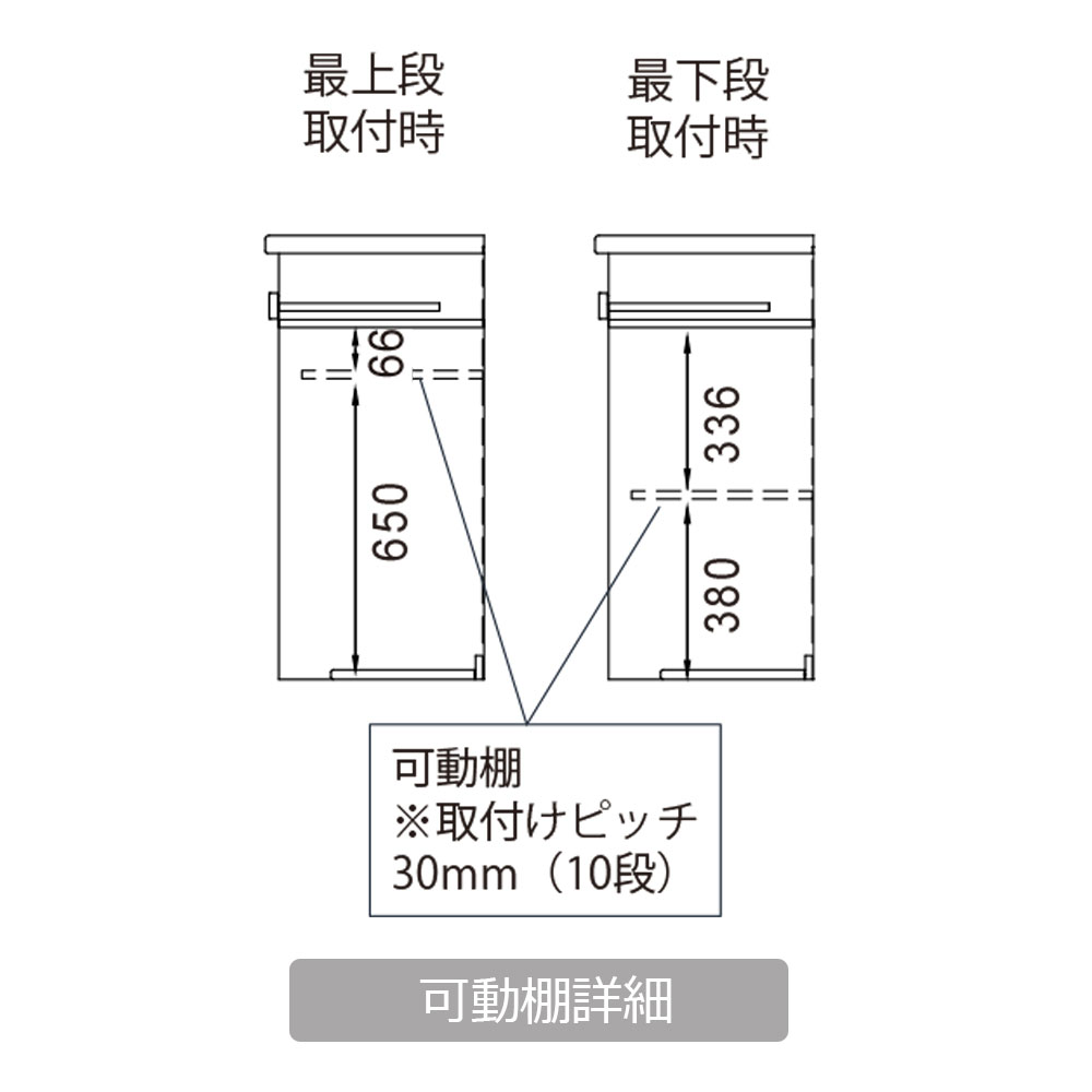 様々なものを収納できるオープンスペースタイプです。収納するものに合わせ、棚板を調節することができ、お好みのダストボックスを置く事も可能です。