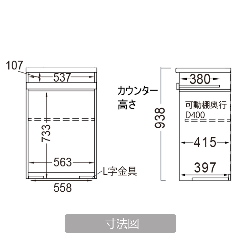 多様な収納を叶えてくれるIDシリーズのキッチンカウンター「IDA-S602R下台」幅60cm 奥行44.5cm