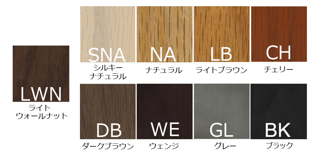 ※LWNライトウォールナット色はウォールナット材、それ以外はオーク材を使用しています。