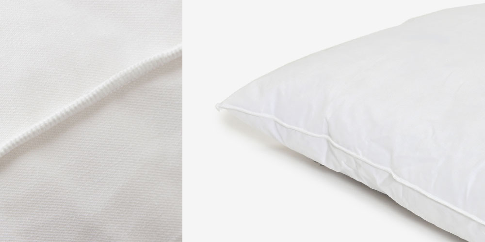 芯がありコシと張りがあるフェザー100%で、ふわっとボリューム感がありながら、沈み込みすぎずしっかり頭を支えてくれます。側生地は肌にやさしい綿100%です。