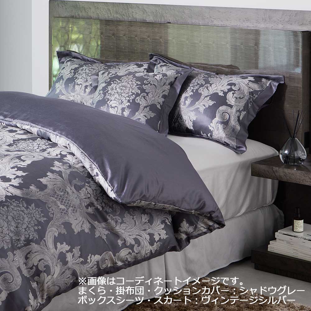 まくらカバー、掛け布団カバー:シャドウグレー/ボックスシーツ、ベッドスカート:ヴィンテージシルバー