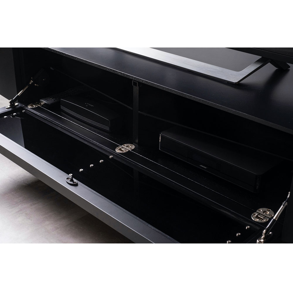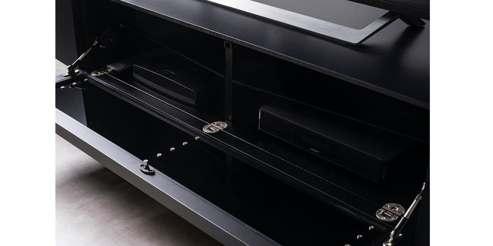 左右2ヵ所のAV機器収納部は、可動棚で上下2段での使用が可能です。※機器のリモコン受信部の位置によっては、扉を閉めた状態でリモコン操作ができない場合がございます。