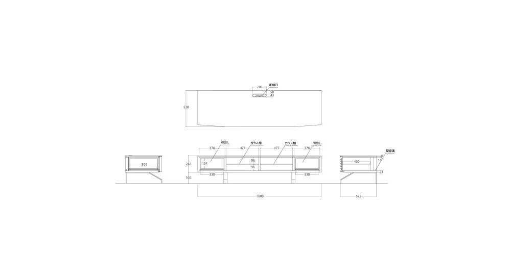 AV機器収納部内寸(中央に左右2か所):幅480x奥行420x高さ200※可動棚板左右各1枚