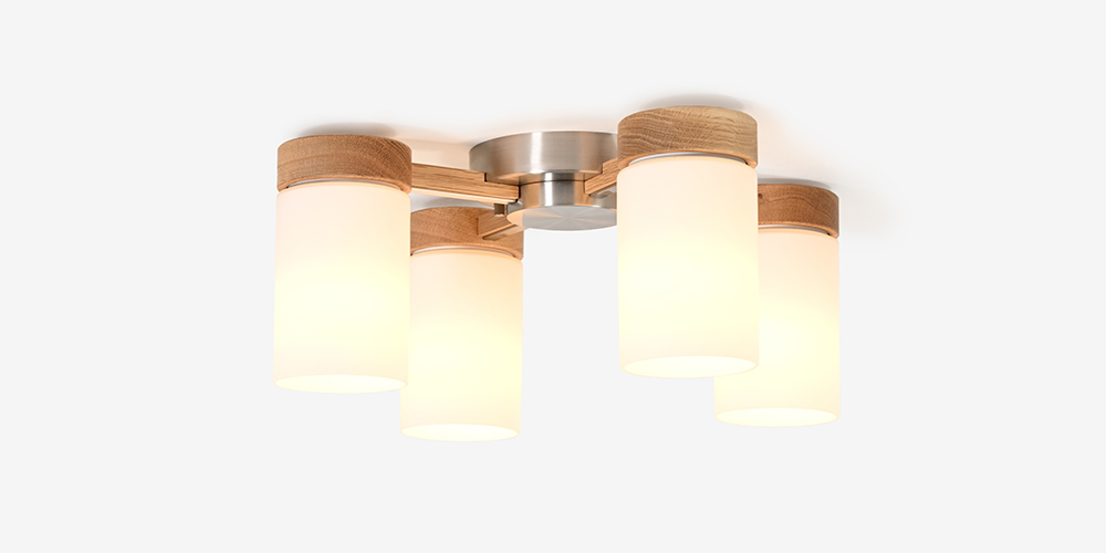 オーソドックスなデザインながら、オイル仕上げの無垢材と存在感のある金属パーツを組み合わせたデザインは、どの角度から見ても美しいシャンデリアです。