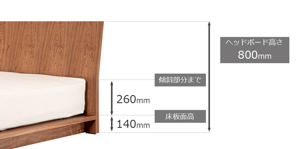 やさしい傾斜のついたヘッドボードは背もたれとしてくつろぐのにも最適で、テレビ視聴や読書など眠る前のひと時も快適に過ごせます。