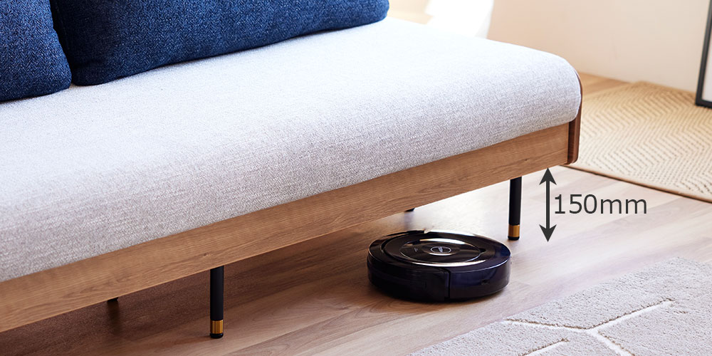 お掃除ロボットも通れるよう足元の高さは15cm設けられており、お掃除も楽に行えます。ゴールドをアクセントにした金属脚がすっきりとした印象を与えます。