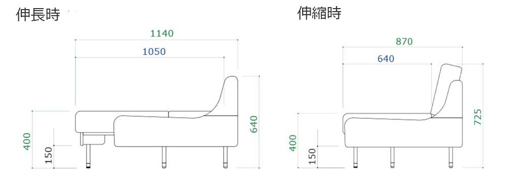 座面を伸ばすことで、ゆったりと広い座面になります。みんなで脚を伸ばしてゴロゴロおくつろぎいただけます。