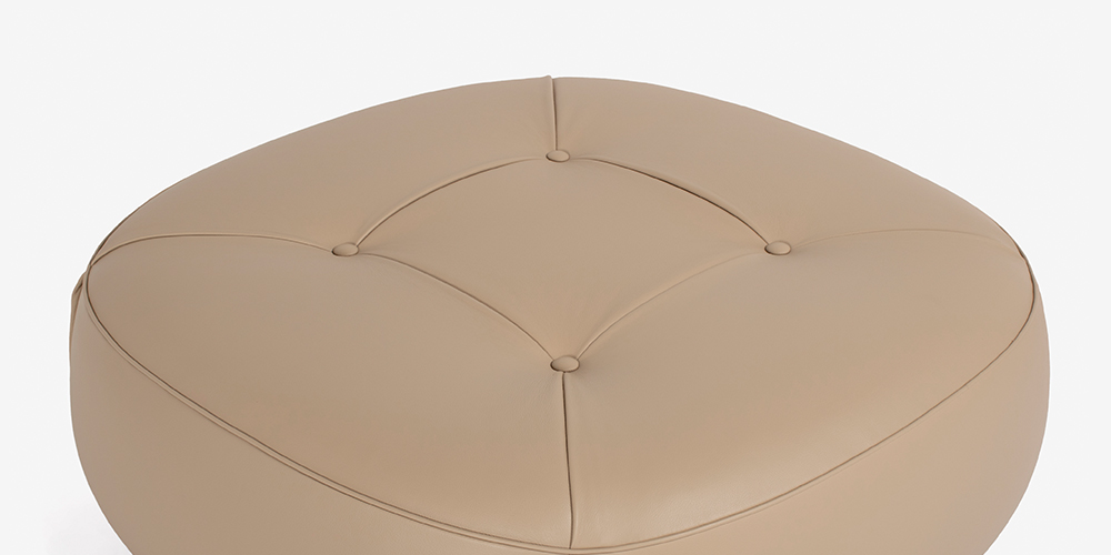 Poltrona Frauの伝統的な装飾と細工から着想を汲み取り、イタリアンファッションのテーラードの要素と融合しました。クラシックなキルティング細工と柔らかなプリーツがデザインの波状の形を引き立てています。スツールのしなやかなカーブは女性らしいシルエットを彷彿させます。