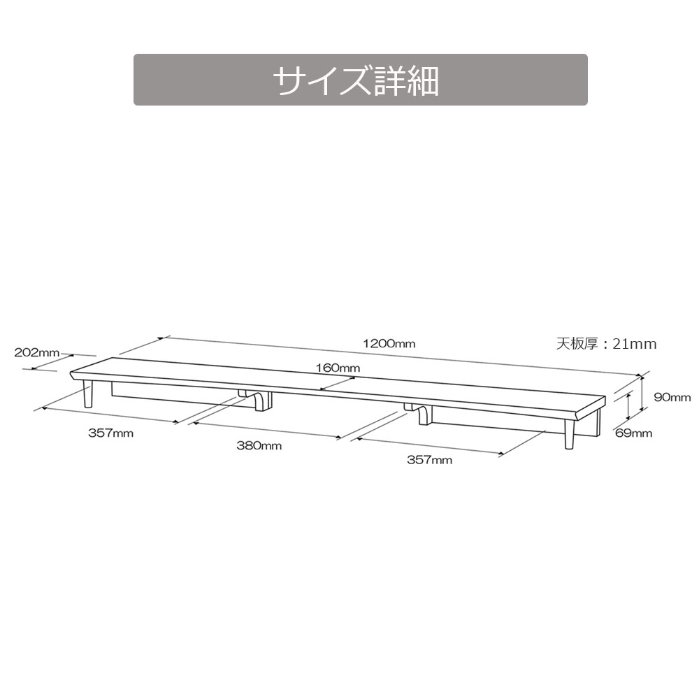 デスクの上に設置して、PCの周辺機器や資料を便利に整頓できる幅120cmのデスクシェルフです。座ったまま手が届く位置に物を収納できるよう低めに設計されており、圧迫感なくデスク上を機能的に使えます。