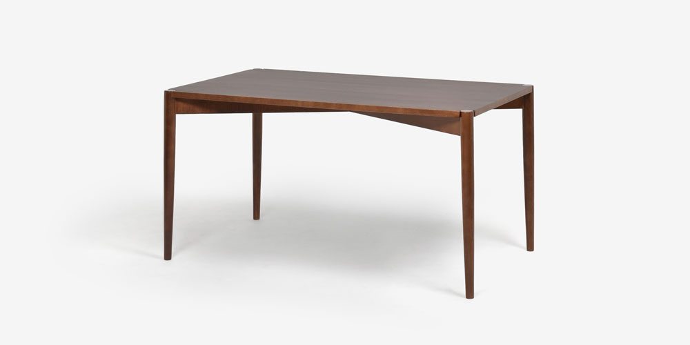 従来のウォールナット材色よりも濃い、ブラックウォールナット色で仕上げています。ブナ材のやさしい手触りはそのままに、北欧風以外にもヴィンテージ風のインテリアにもぴったりな色合いです。※天然木を使用している為、木目や色味は一点ごとに異なります。