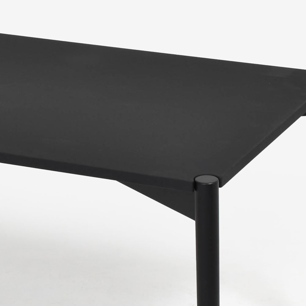 天板の角を円型にくりぬき、天板と脚をデザイン化しています。他には類を見ない特徴的なのデザインです。