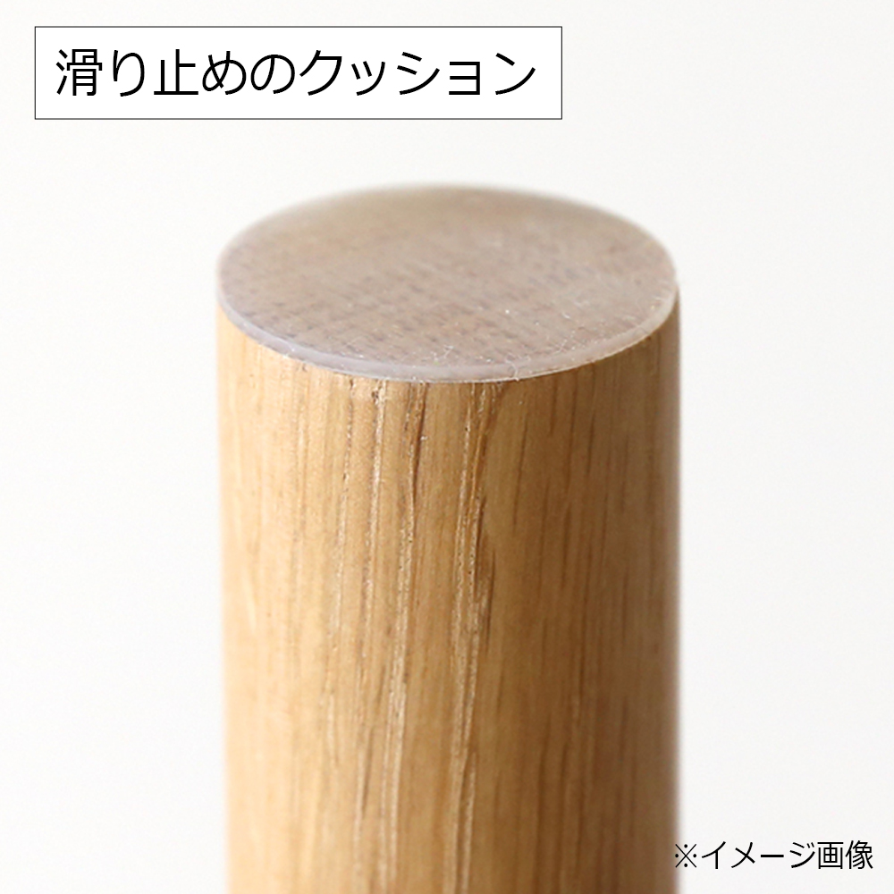 本体が滑り落ちないよう、脚の下に取り付けるクッションを同梱しています。また、棚の後ろにもクッションを付けることにより、横ずれによって壁を傷つけるのを防ぐことができます。