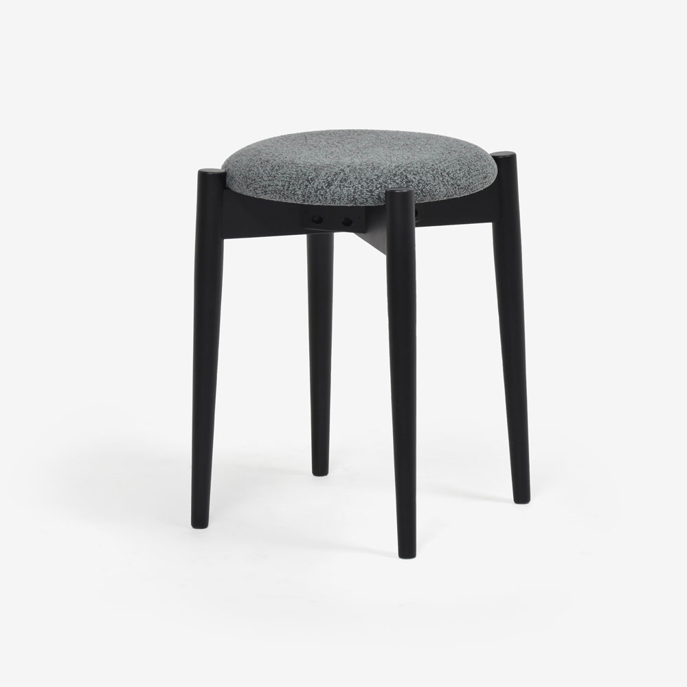 従来のウォールナット材色よりも濃い、ブラックウォールナット色で仕上げています。ブナ材特有のきめ細かな木目や、やさしい肌触りはそのままに、シックなインテリアにもぴったりな色合いです。※天然木を使用している為、木目や色味は一点ごとに異なります。