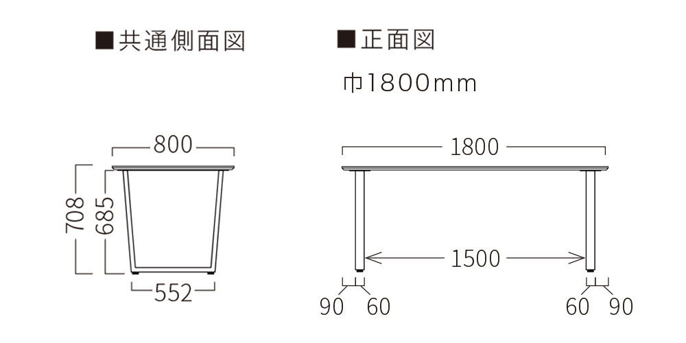 | 奥行800mm | 幅1600x奥行800x高さ708 |