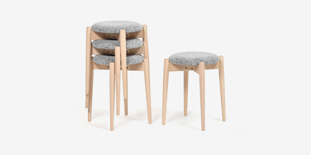 秋田木工 スツール「リュッケ」ブナ材 白木塗装/張地 布ブラッシュ#No05