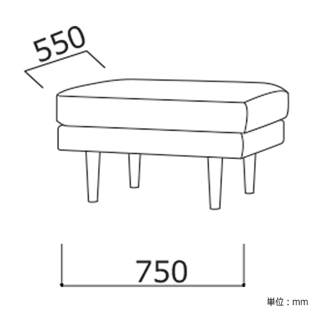 高さのあるスタイリッシュな脚部と、薄めに仕上げた座面が絶妙なバランス。どの方向から眺めてもスッキリとした印象のフォルムが特徴的なオットマンです。