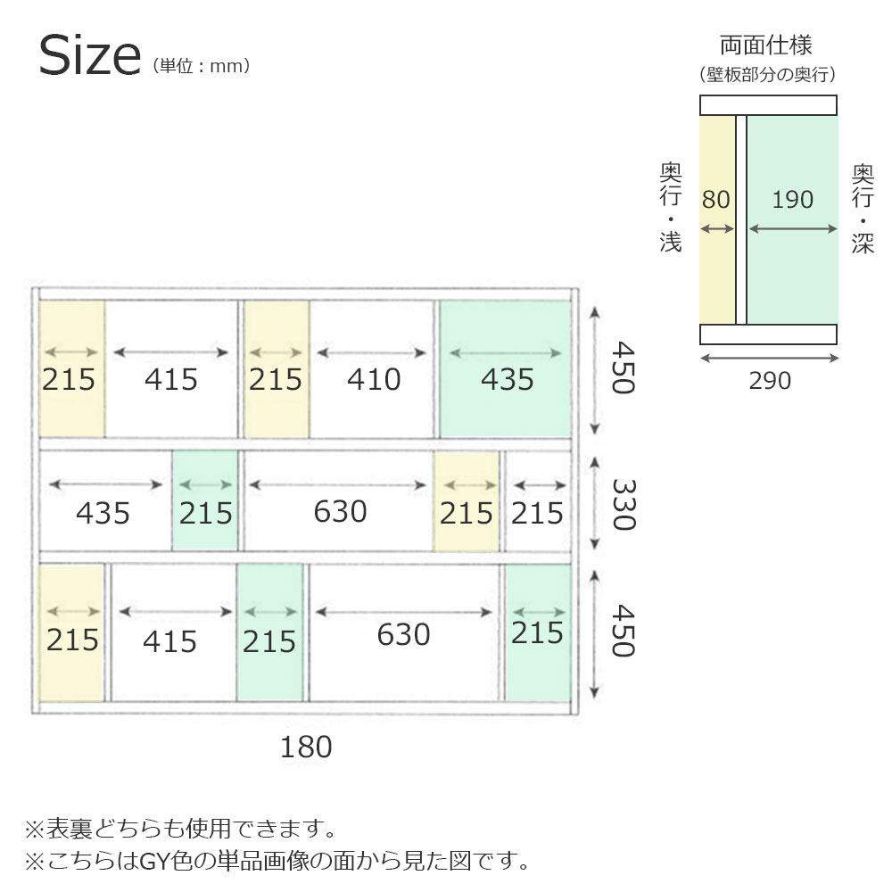 ※表裏どちらも使用できます。こちらは単品画像と同じ面から見た図です。壁板部は奥行きが表裏で異なります。