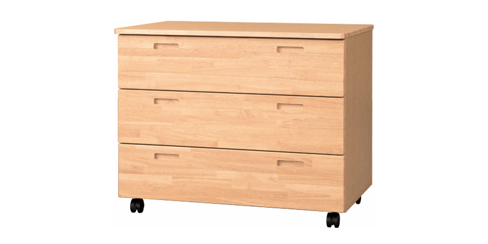 ナチュラルな木の質感とシンプルなデザインのチェストです。キャスター付きなので移動がラクに行えます。